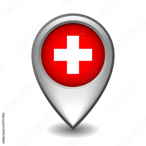 Obraz premium Silver metal map pointer with Switzerland flag