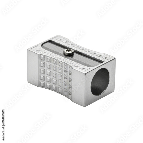 Fototapeta premium Silver Metal Pencil Sharpener isolated on a transparent background