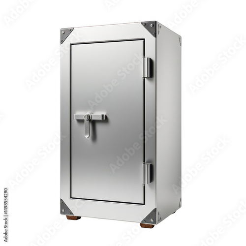© Poly, Fototapeta premium Silver metal safe box isolated on transparent background
