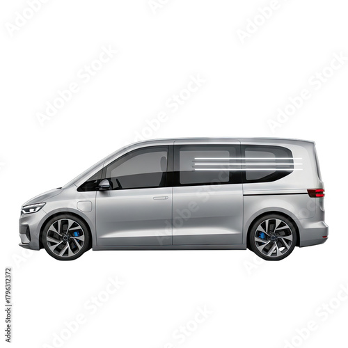 © vanesa, Obraz premium Silver Minivan Vehicle Side Profile With Blue Accents On Wheels And Black Tinted Windows Isolated On Transparent Background