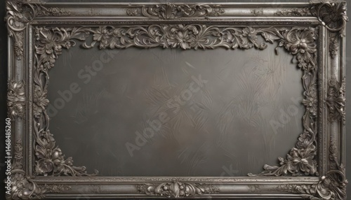 Obraz premium Silver ornate frame with embossed floral motif, aged patina , embossed...