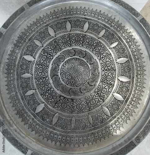 © serikbaib, Naklejka premium silver plate with moroccan pattern