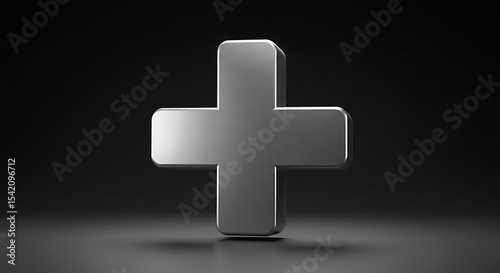 © Jamal Musallah, Fototapeta premium Silver Plus Symbol on Dark Background