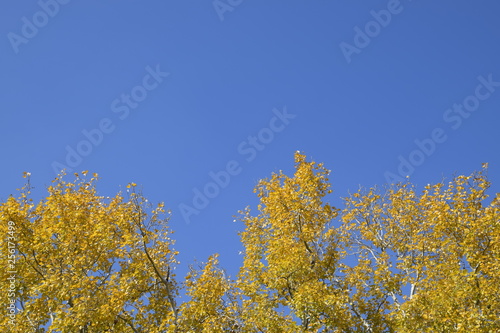 © eleonimages, Fototapeta premium Silver poplar in autumn paint against the blue sky