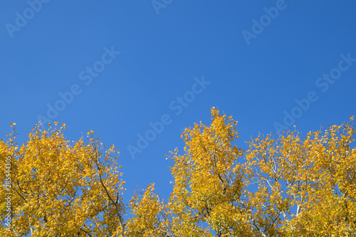 © eleonimages, Fototapeta premium Silver poplar in autumn paint against the blue sky