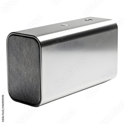 © yafi4, Obraz premium Silver rectangular speaker with rounded edges and a perforated front grill presented on white or transparent background