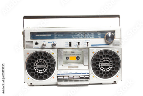 Fototapeta premium Silver retro ghetto radio boom box cassette recorder from 80s