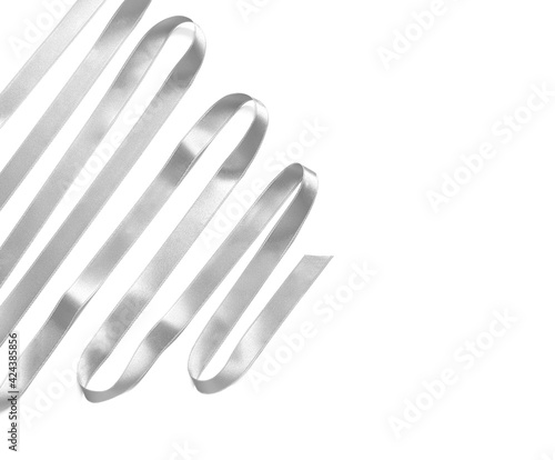 Obraz premium Silver ribbon on white background