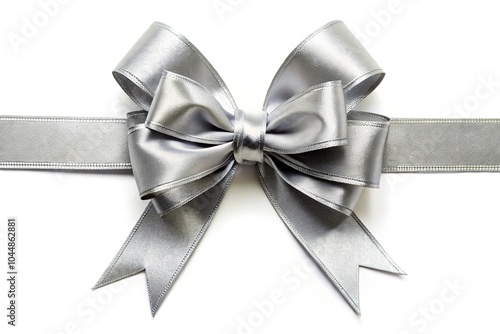 © Latsamee, Naklejka premium Silver ribbon with bow isolated on white background