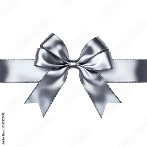 © Devid, Naklejka premium silver satin gift bow with ribbon isolated on white or transparent background