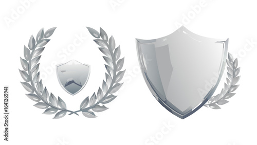 Obraz premium Silver shield laurel wreath emblem award achievement security protection...