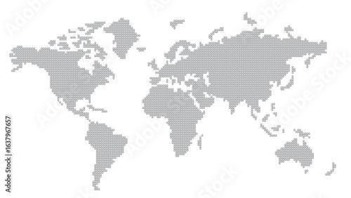 Fototapeta premium Silver silhouette of the World Map, isolated on transparent background. Global map formed by uniform silver units. 3D illustration