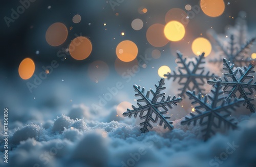 © Kateryna, Naklejka premium Silver snowflakes on a festive background with bokeh