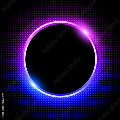 Obraz premium Silver sparkling ring with purple blue neon glitter on black background