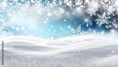 Naklejka premium Silver Sparkling Snowflakes Falling Gently over a snowy landscape, with a...
