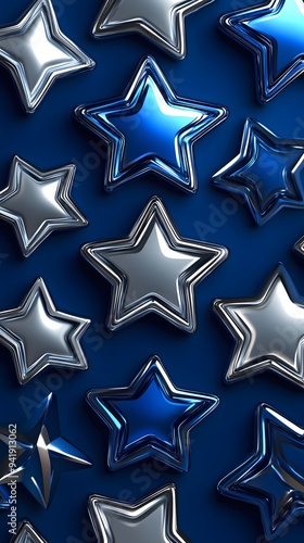 Obraz premium Silver Stars on Blue Background, Abstract Image, Texture, Pattern, Wallpaper,...