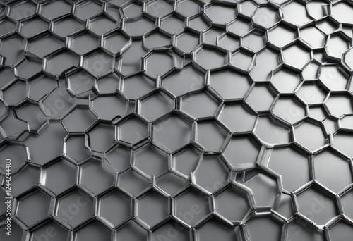 Fototapeta premium Silver steel mesh background with hexagonal honeycomb pattern, grid, technology, futuristic