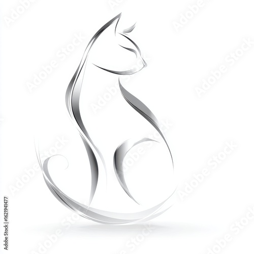 © Enjoy, Obraz premium Silver Stylized Cat Illustration on White Background
