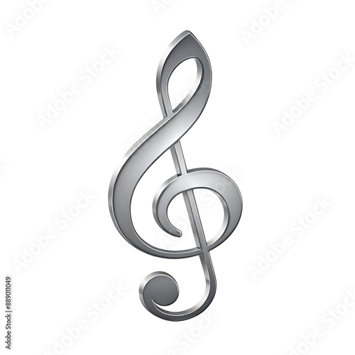 © mudasar, Fototapeta premium silver treble clef on white background. treble clef 3d