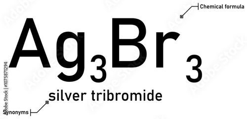 Obraz premium Silver tribromide chemical formula and synonyms with callout titles