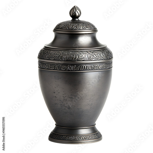 Fototapeta premium Silver Urn with Lid and Bird Top Isolated on Transparent Background