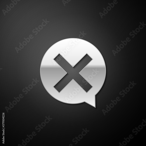 Obraz premium Silver X Mark, Cross in circle icon isolated on black background. Check cross mark icon. Long shadow style. Vector.