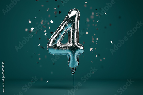 © Digital Sensei, Fototapeta premium Silver 4 Year Anniversary balloon isolated