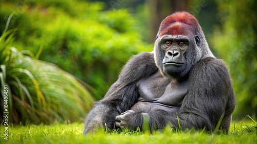 © Latsamee, Obraz premium silverback gorilla resting in meadow