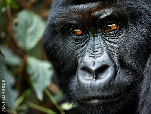 © Kanisorn, Obraz premium Silverback mountain gorilla with expressive eyes.