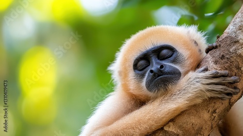 © VirtuLens, Obraz premium Silvery gibbon resting peacefully among the branches in Java