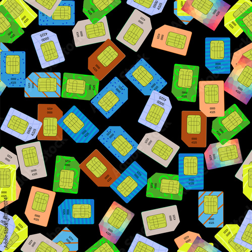 Fototapeta premium SIM Cards Seamless Pattern on Black Background.