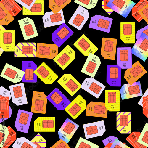 Fototapeta premium SIM Cards Seamless Pattern on Black Background.