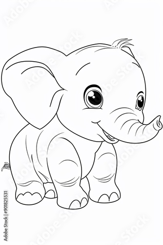 © Michela, Naklejka premium Simpatico elefantino disegnato per bambini, da colorare. Su sfondo bianco