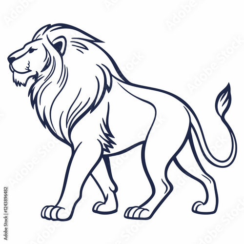 © JESMIN, Fototapeta premium Simple a Lion line art vector design white background