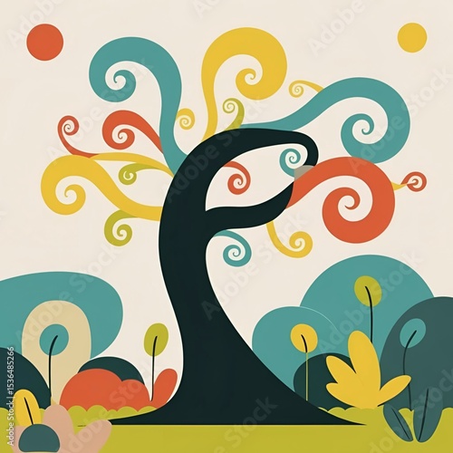 Fototapeta premium Simple abstract pastel colored tree and branch illustration.