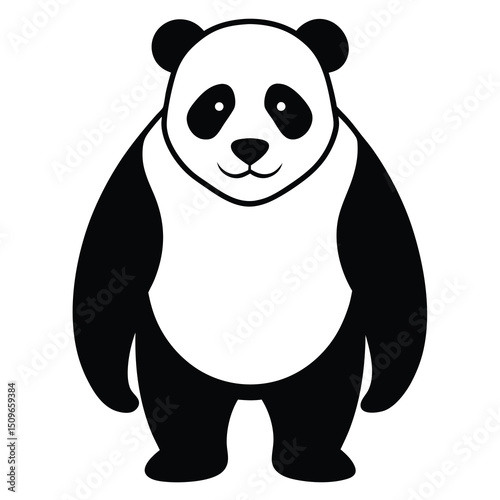 © MDMUZAHIDUL, Fototapeta premium Simple adorable cartoon panda bear illustration in black and white isolated on white background