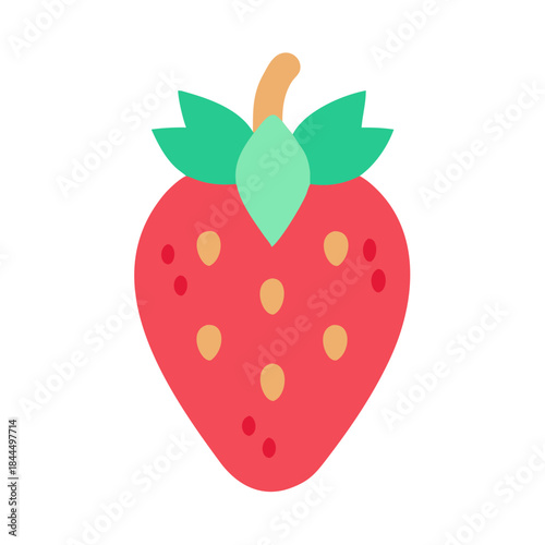 © Valentina, Fototapeta premium Simple and colorful vector illustration of a strawberry with green leaves on a white background.