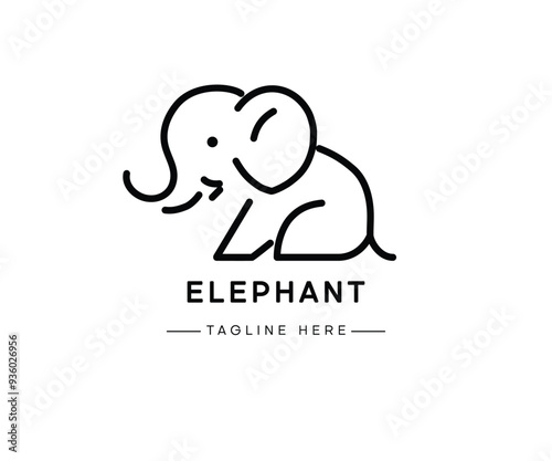 © laias, Obraz premium Simple and minimal elephant line art logo icon. Modern vector line icon isolated on white background.