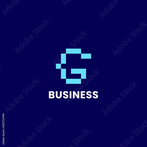Obraz premium Simple and minimalis bright blue pixel letter G monogram initial logo