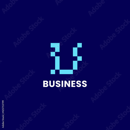 Fototapeta premium Simple and minimalis bright blue pixel letter U monogram initial logo