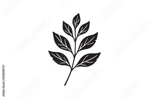 © Hasan Asib, Fototapeta premium simple and subtle fall leaf vector silhouette black and white, set against a white background.