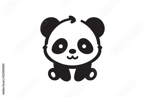 Fototapeta premium simple and subtle vector silhouette of baby cute panda in black and white, set against a white background