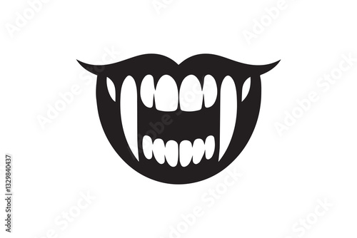 © Hasan Asib, Naklejka premium simple and subtle vector silhouette of vampire teeth in black and white, set against a white background