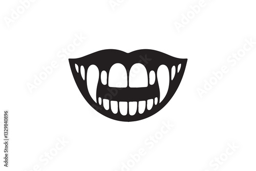 © Hasan Asib, Naklejka premium simple and subtle vector silhouette of vampire teeth in black and white, set against a white background