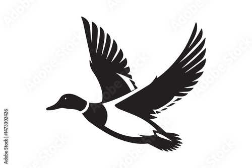© rafsancottage, Obraz premium simple and unobtrusive flying Duck vector silhouette illustration isolated in white background