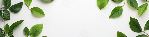 Fototapeta premium simple arrangement of green leaves forming circle on smooth white background...