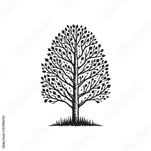 Naklejka premium Simple Aspen Tree Front View Vector Icon – Vintage Logo & Retro Illustration
