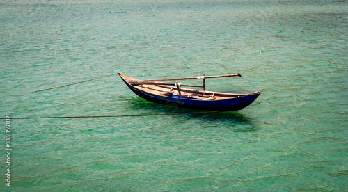 © dangthachhoang, Naklejka premium Simple bamboo boat on the sea