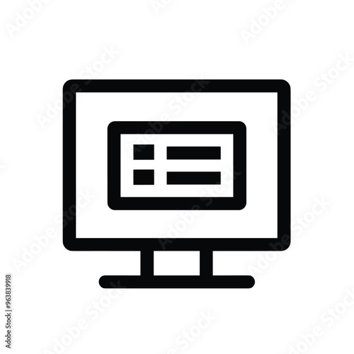 Fototapeta premium Simple black and white computer monitor icon with user interface elements.