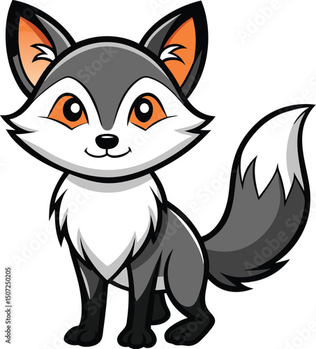 © Numan GFX, Fototapeta premium Simple Black and White Fox Cartoon Illustration – Minimal Wildlife Graphic Design